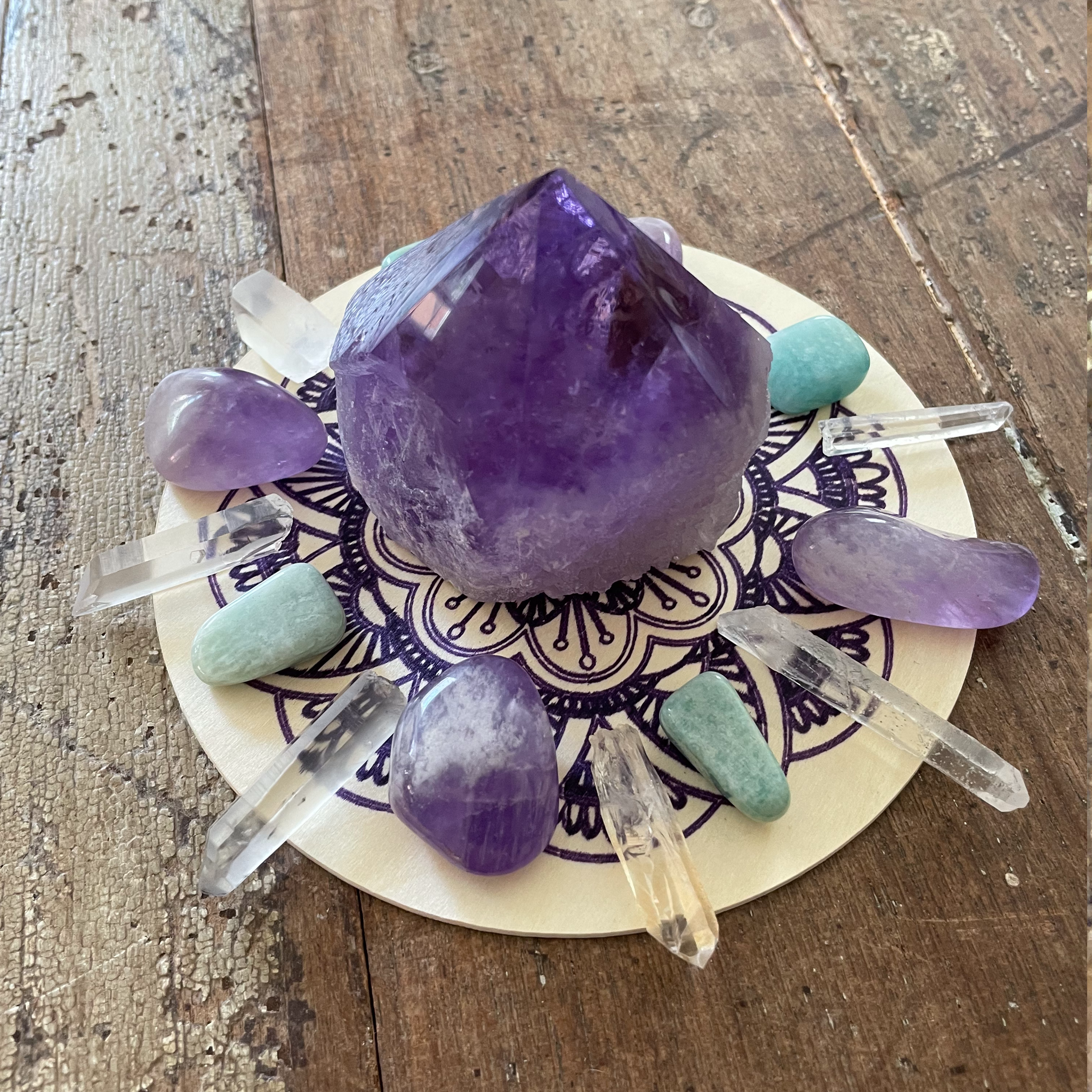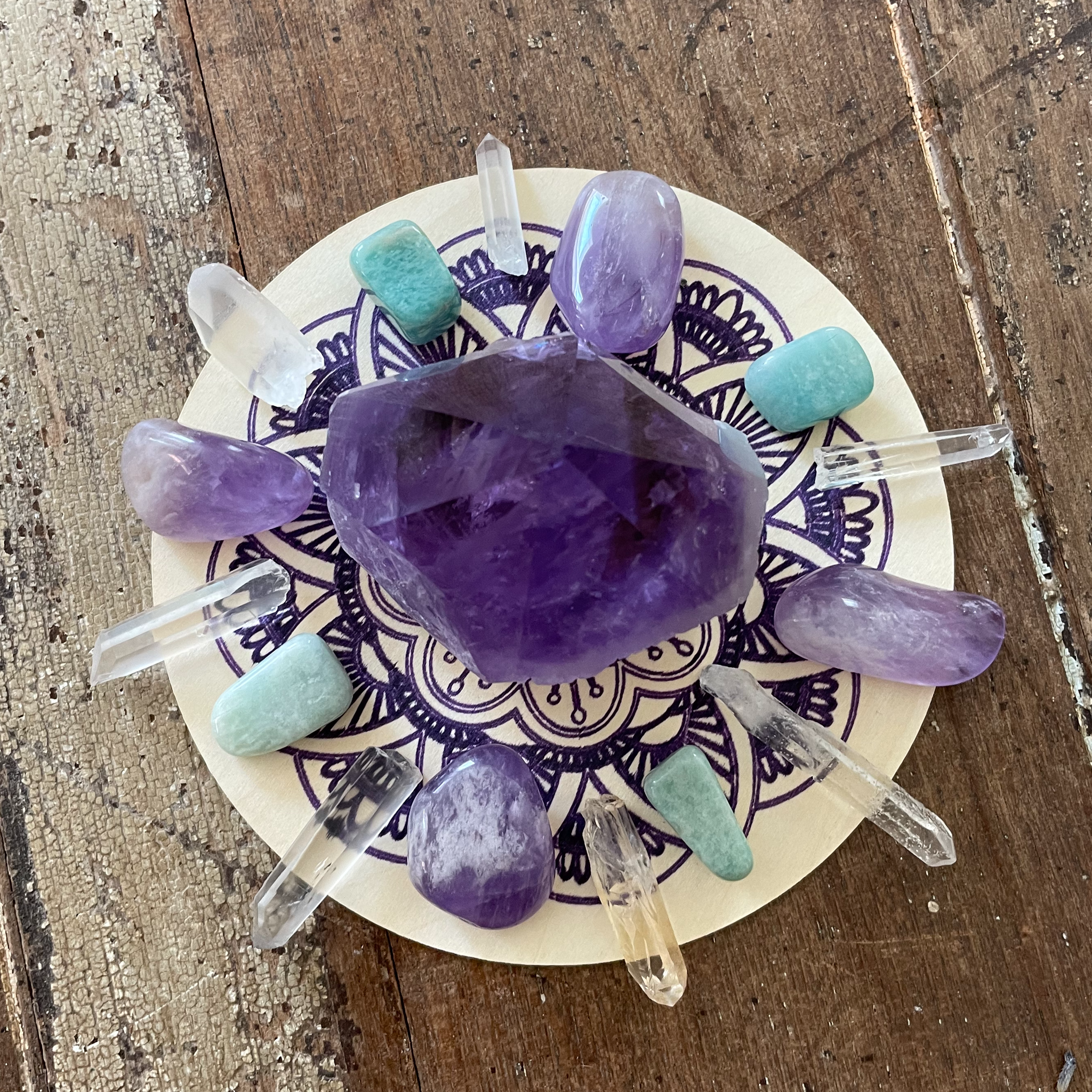 The Seed Of Life is one of the most useful designs for crystal grids. it has a center point of power, a ring of unity, and a protective shield. Grids based on the Seed Of Life bring you the energy to complete a task or goal successfully. The Seed Of Life with its six-fold symmetry, hexagonal structure, and the ability to promote harmony, balance, sincerity, and truth is an excellent basis for an all-purpose grid. And one of my favorites!