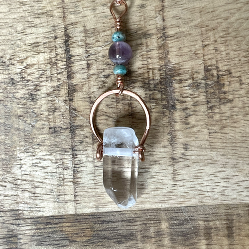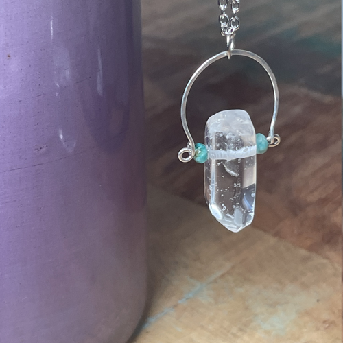 Crystal Point with faceted Turquoise & Amethyst Bead Sterling Silver Pendant