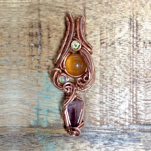 Carnelian, Opal, Peridot with Vera Cruz Amethyst Point Pendant