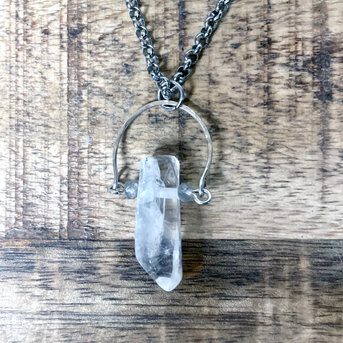 Crystal Point with faceted labradorite Sterling Silver Pendant