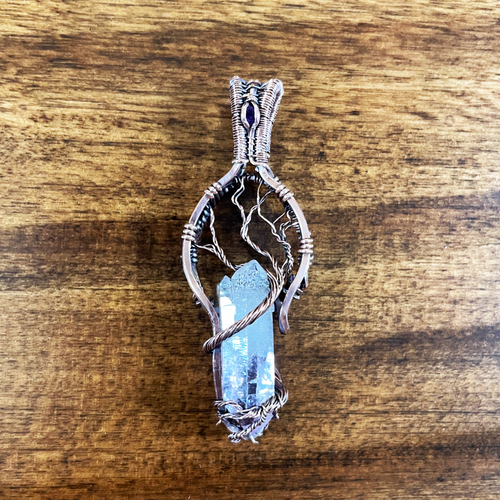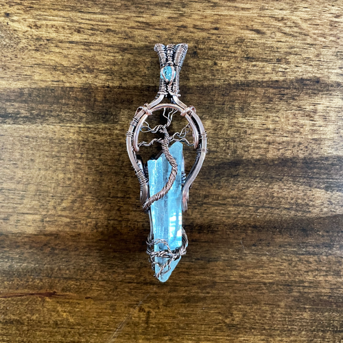 Clear Quartz Point with Natural Tourmaline Crystal Tree of Life Pendant