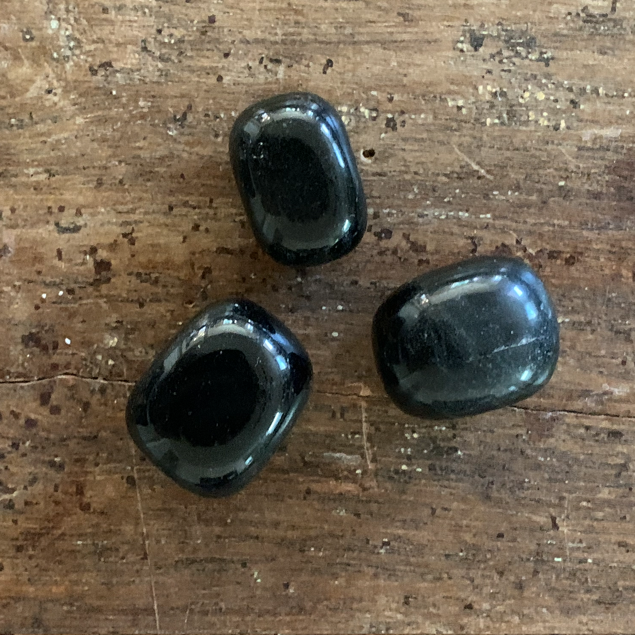 A powerful protection stone, Black Onyx absorbs and transforms negative energy, and helps to prevent the drain of personal energy. Black Onyx aids the development of emotional and physical strength and stamina, especially when support is needed during times of stress, confusion, or grief. I like to keep this along with Shungite, black tourmaline, and hematite in front of my computer to help transmute EMF.