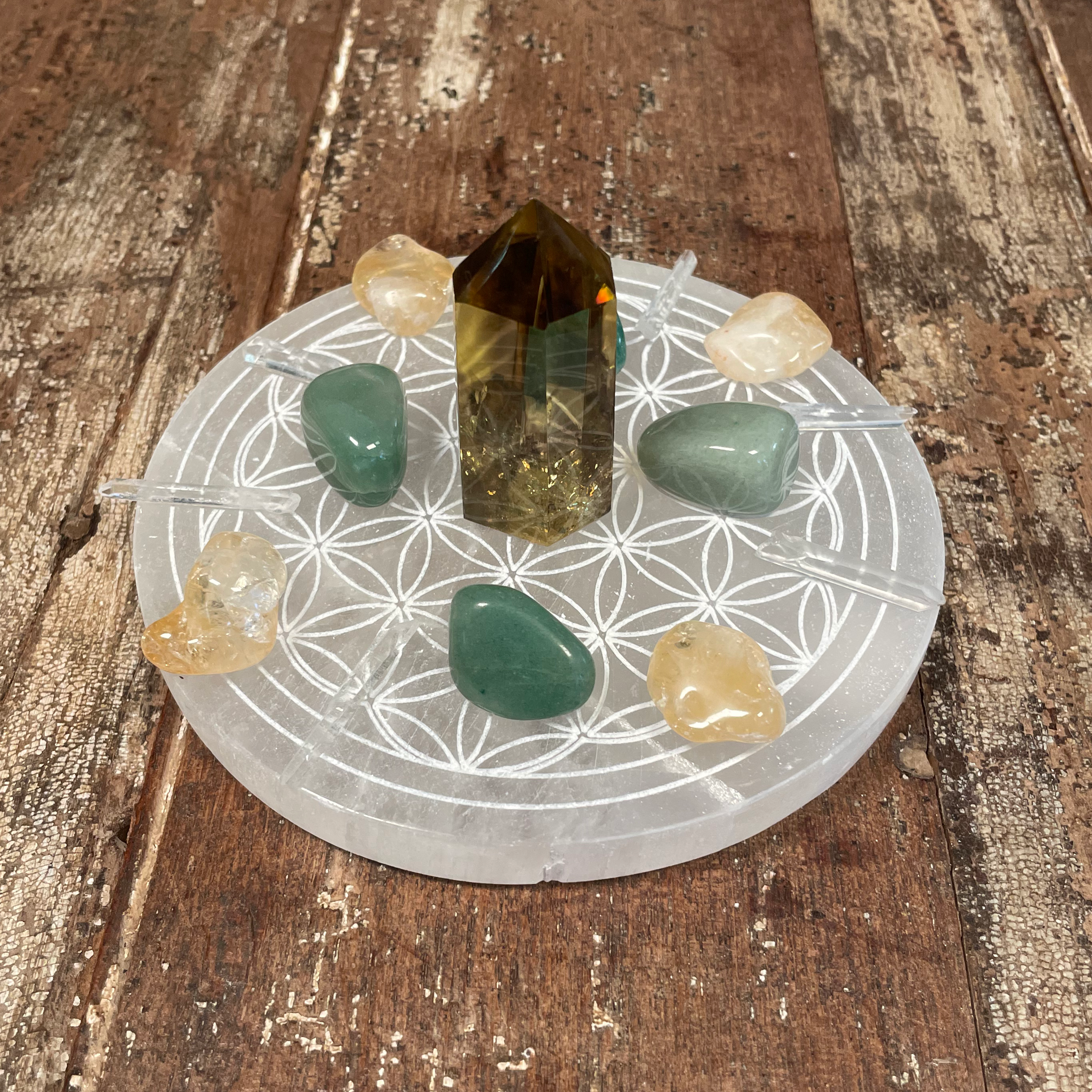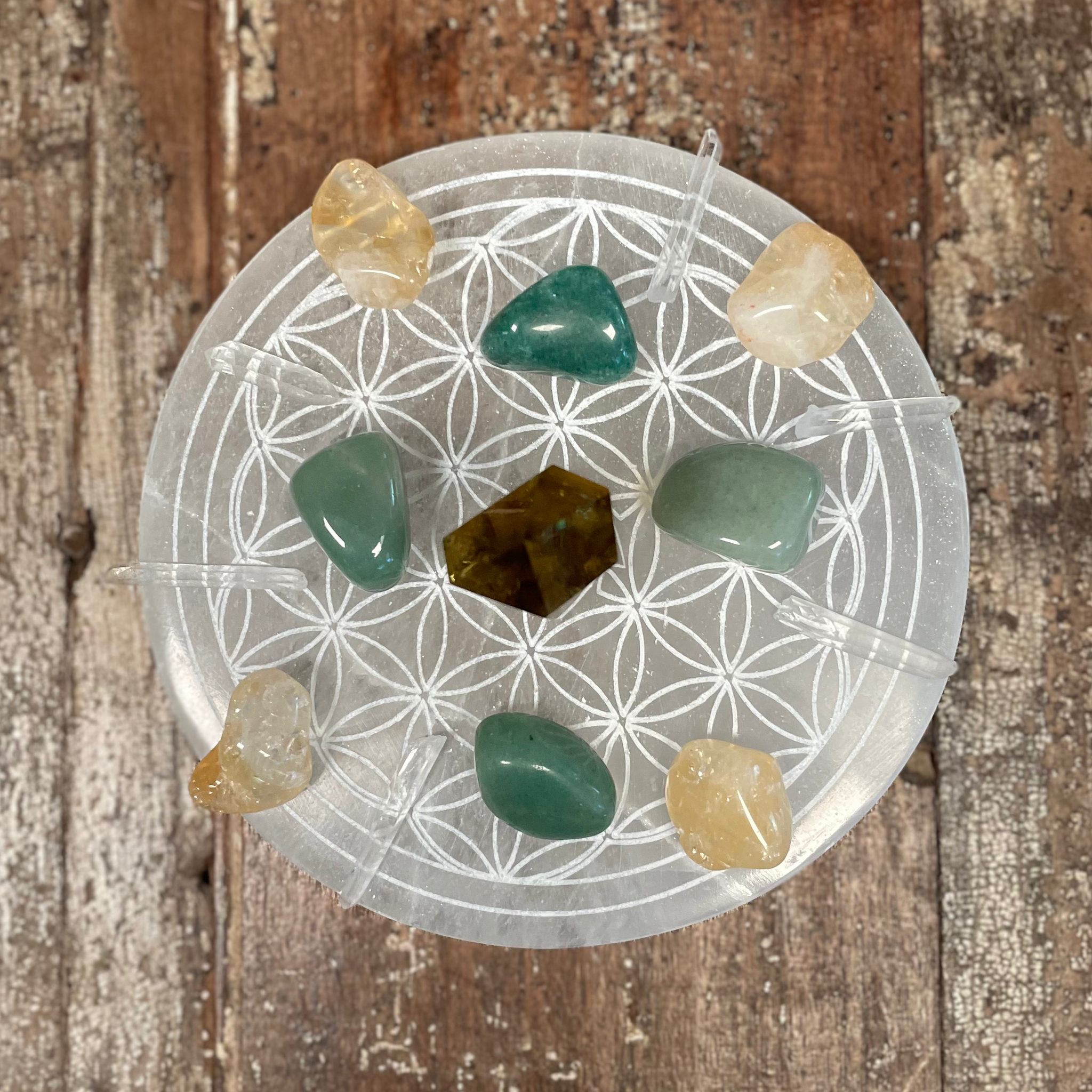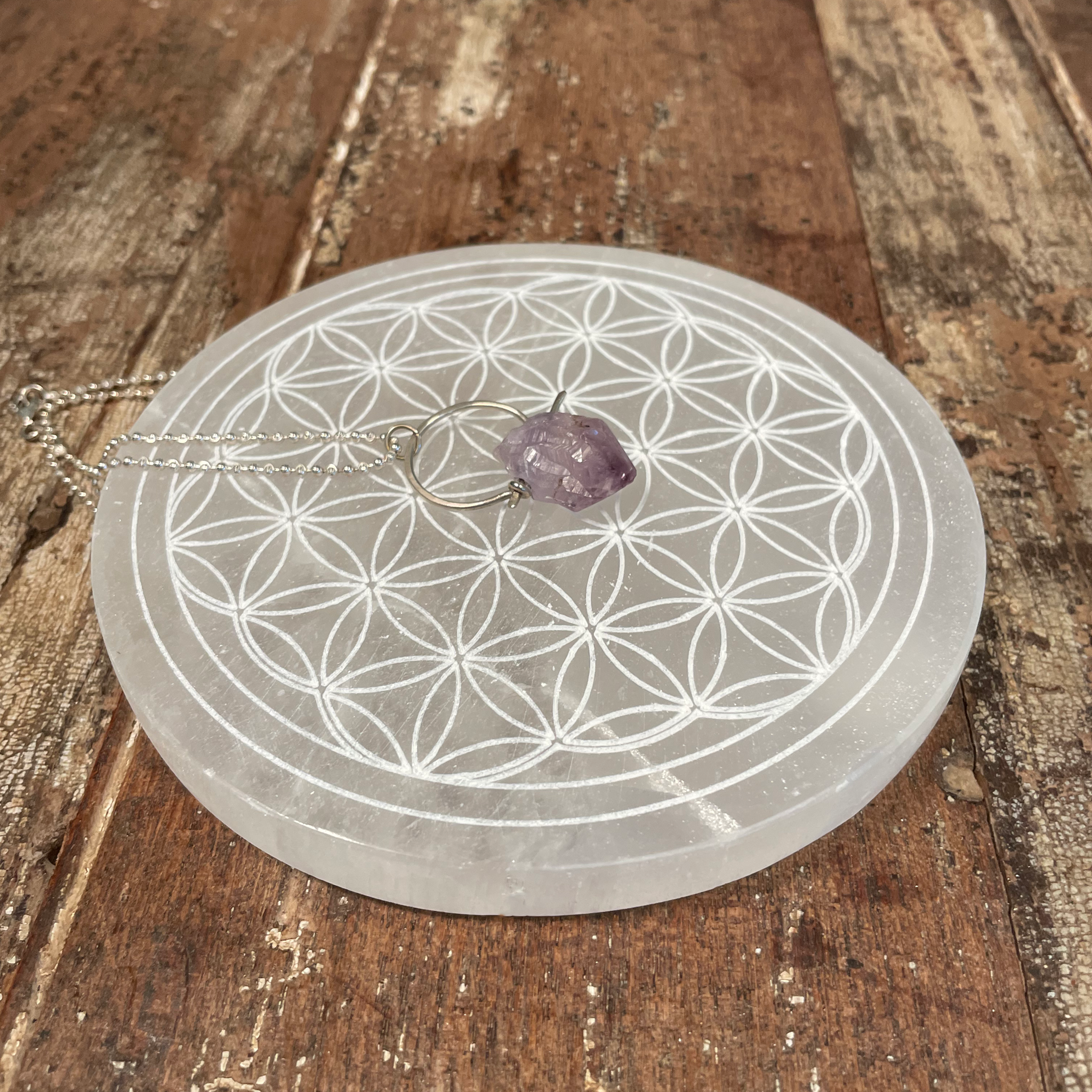 This listing is for One (1) Selenite Charging plate etched with a Flower of Life design. Excellent focal piece in any space, excellent for purifying energy, clearing the aura and excellent for a base for crystal grids!