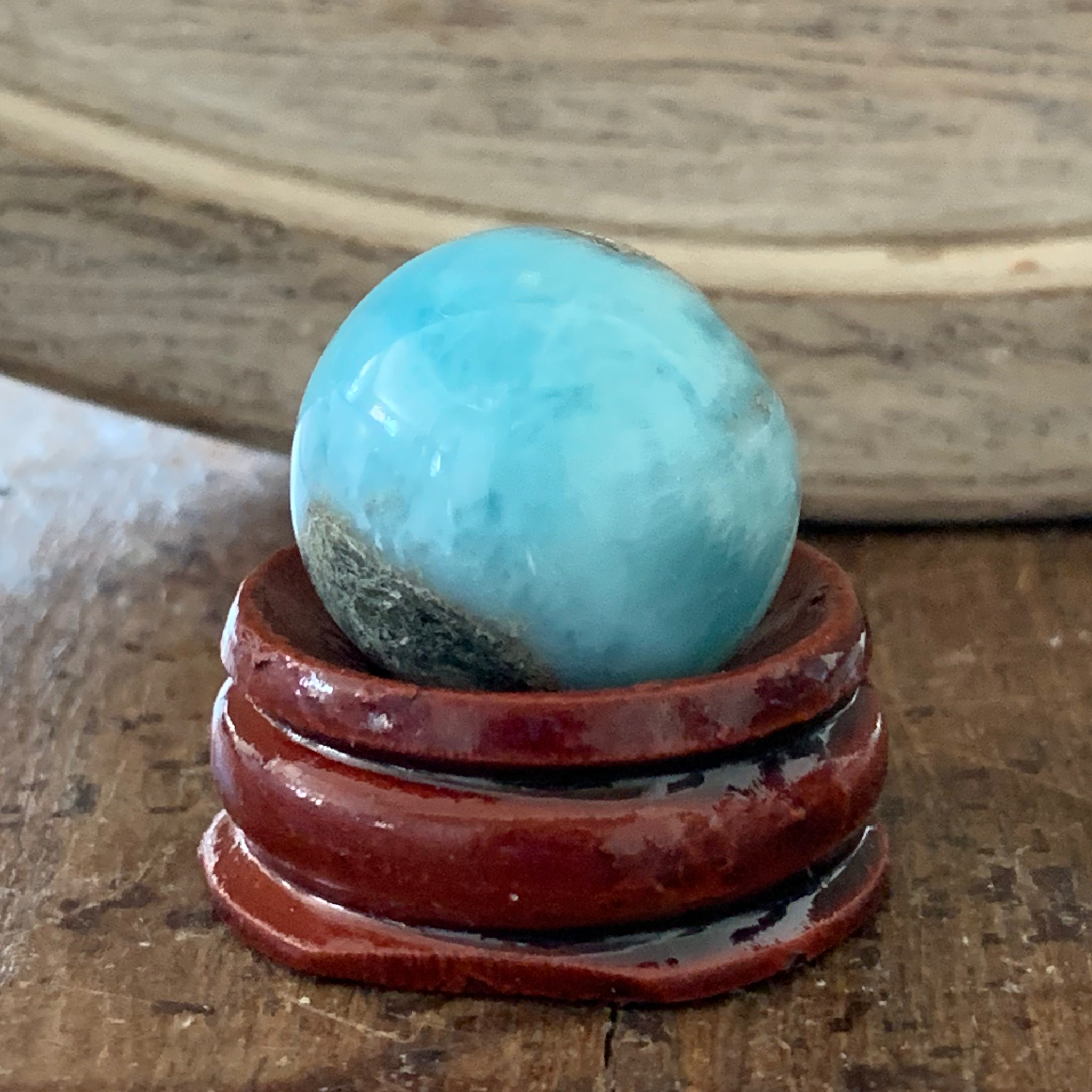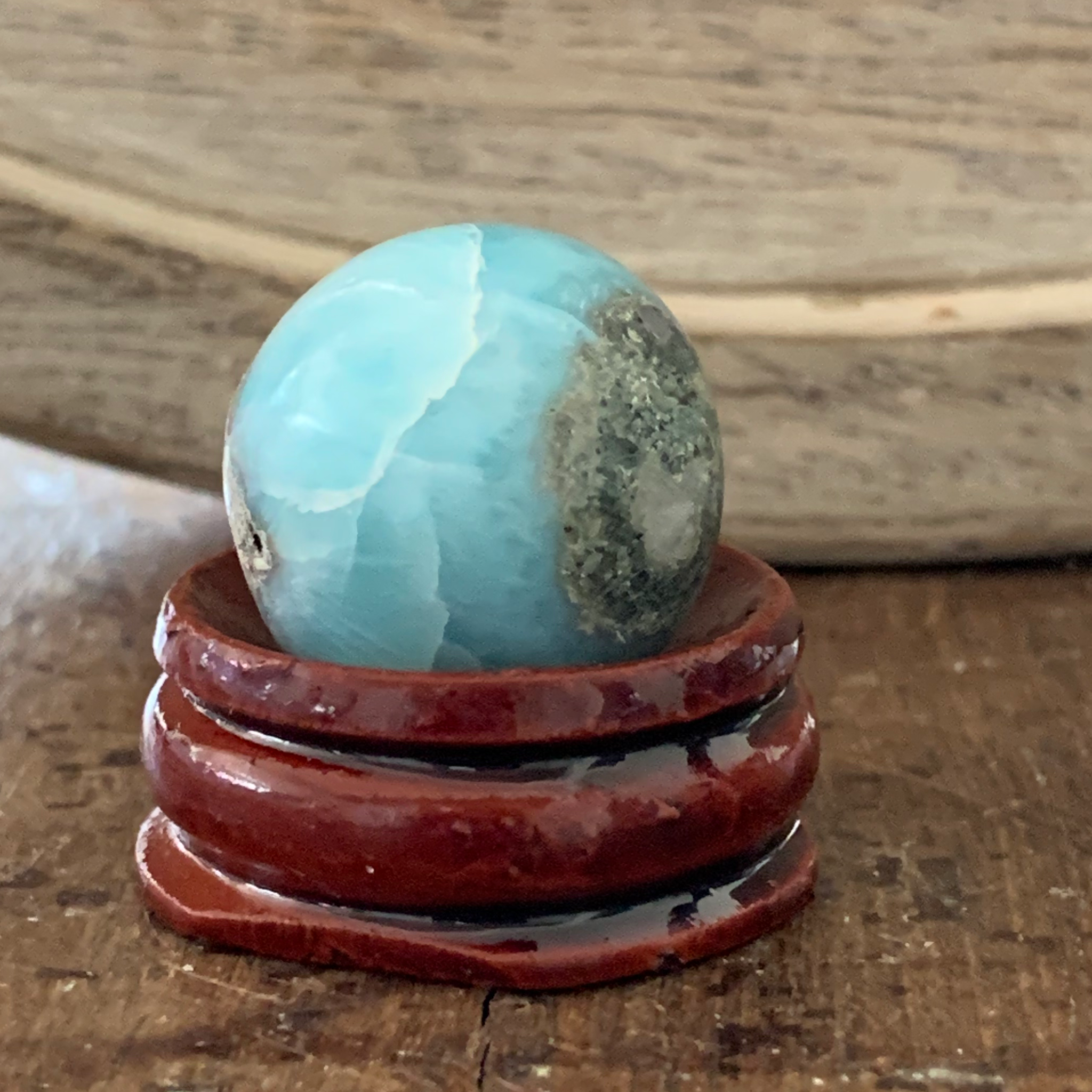 This Larimar Sphere is 14g in weight and approx 21cm across. Please take note of the size it's a small sphere, it has nice markings and light color. These are great for healers, meditation, and wire wrap artists.