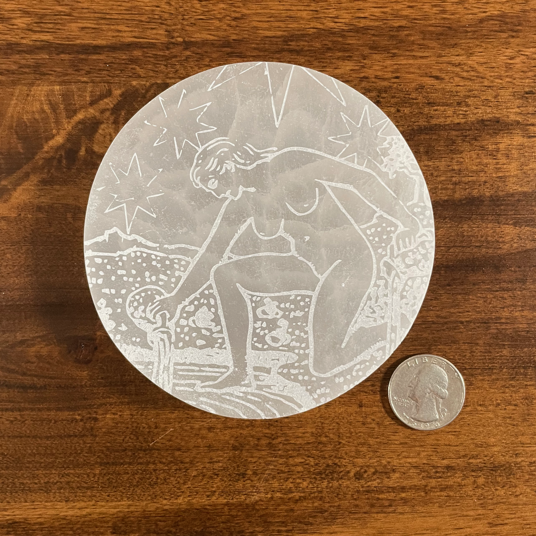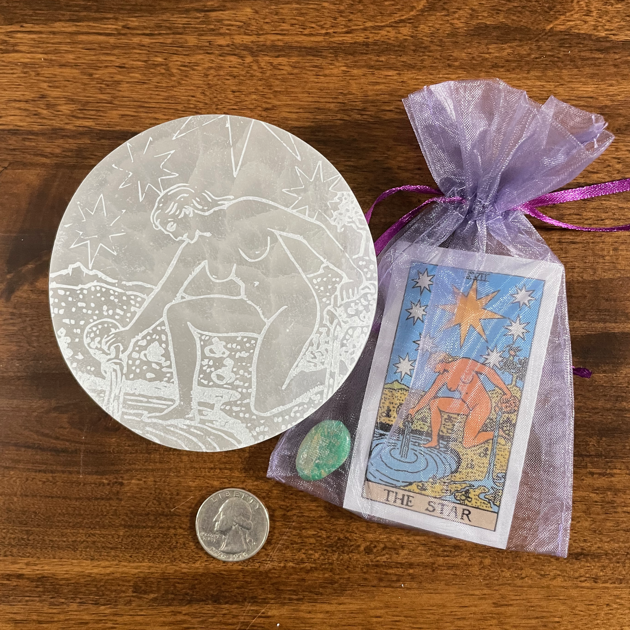 This listing is for One (1) Selenite Charging plate etched with The Star Tarot Card based on the Waite Rider deck design.