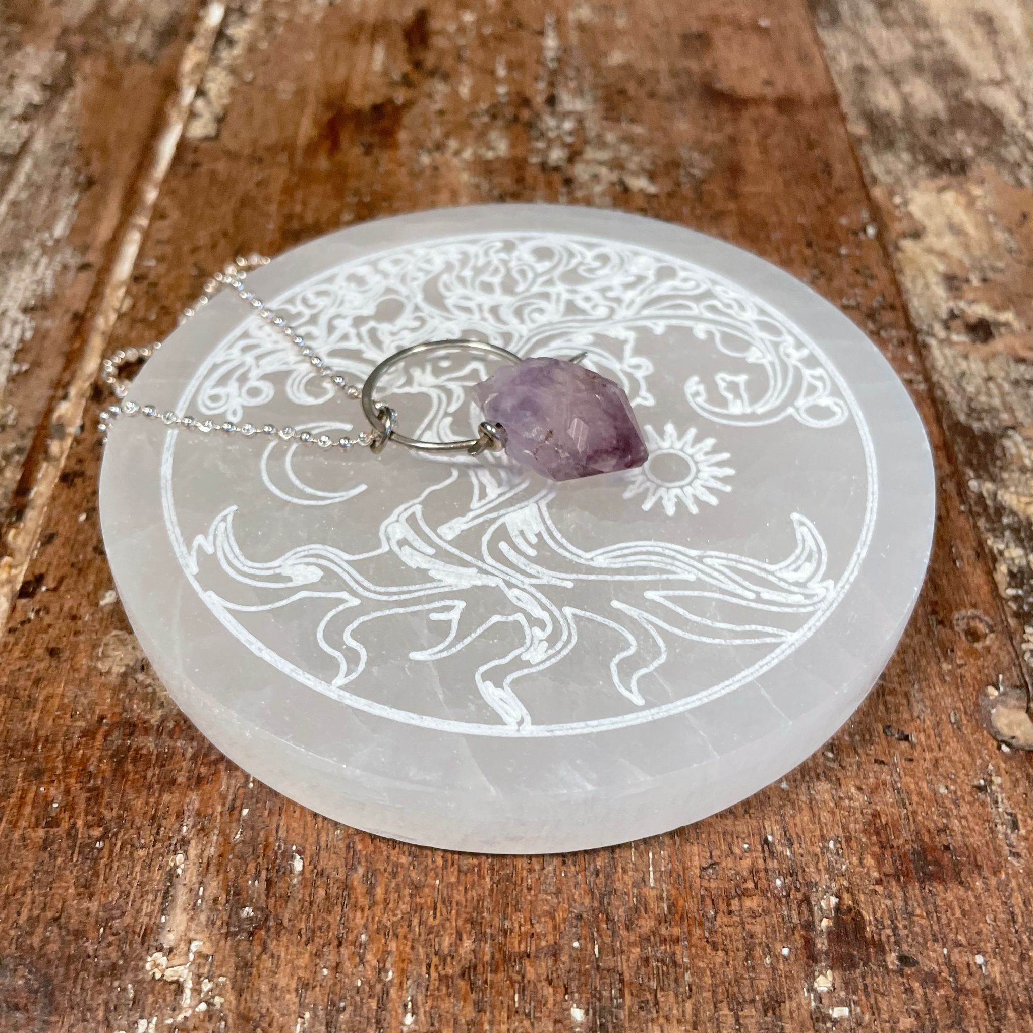 This listing is for One (1) Selenite Charging plate etched with a Tree of Life design. Excellent focal piece in any space, excellent for purifying energy, clearing the aura.