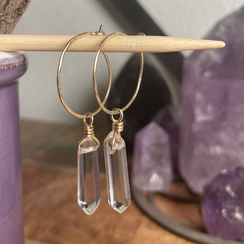 Wire and Gemstone Earrings, Crystal Point Earrings