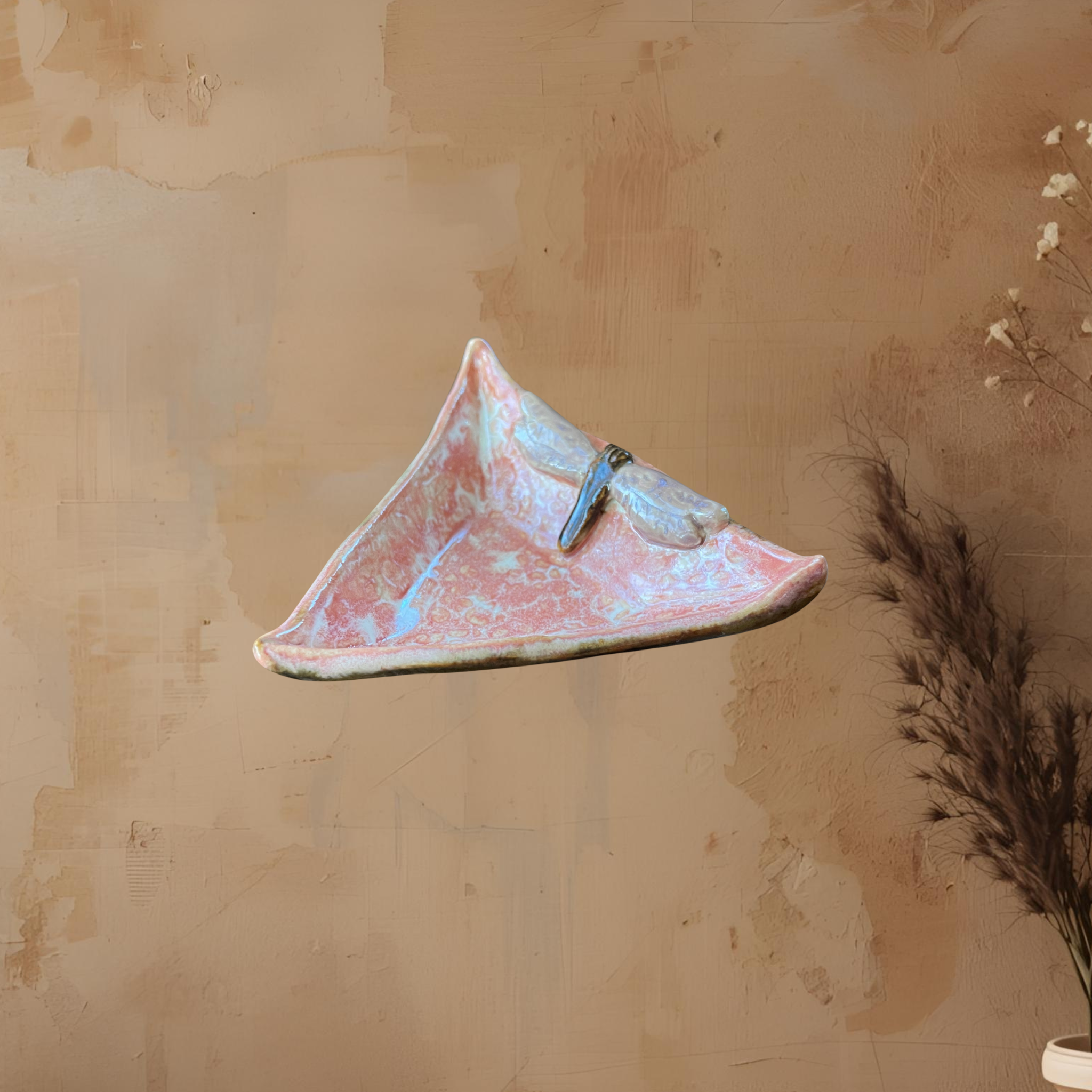 Triangular Ceramic Jewelry Dish with Dragonfly
