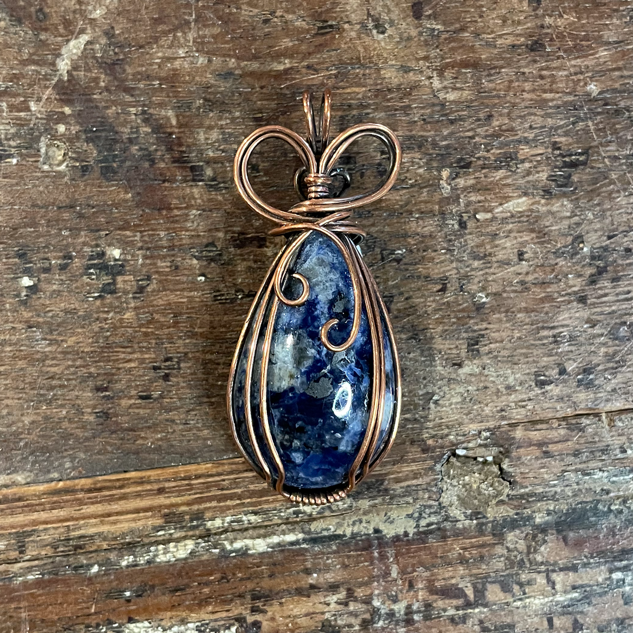 This Sodalite Wire Wrap pendant has a gorgeous deep blue color and is the definition of the perfect sodalite stone. Hand "Cabbed" and wire wrapped by Ascend Jeweler Alexis Prince, This piece will warm your heart.