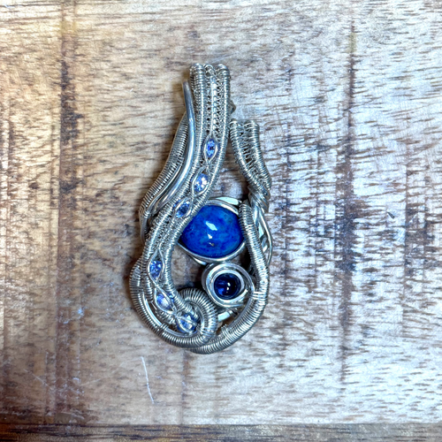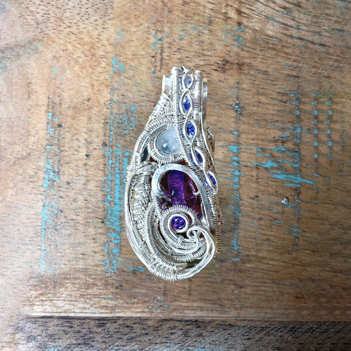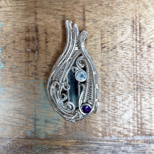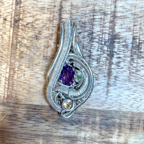 Sapphire & Amethyst Sterling Silver Wire Weave Pendant, Heady Pendant