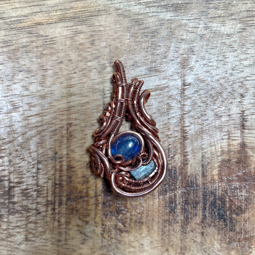 Carnelian and Tanzanite Copper Wire Weave Pendant