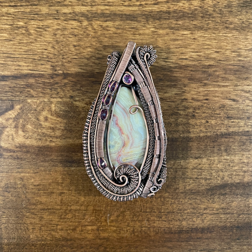Heady or Layered Design Wire Jewelry, Artisan Crafted Wire Jewelry with natural gemstones and hand-cut and polished cabochons. All of our pieces are available in copper, silver, gold, gold fill, and rose gold (fill). If you see a piece that you like and would like a different stone or metal let us know! We are happy to create a custom order for you.