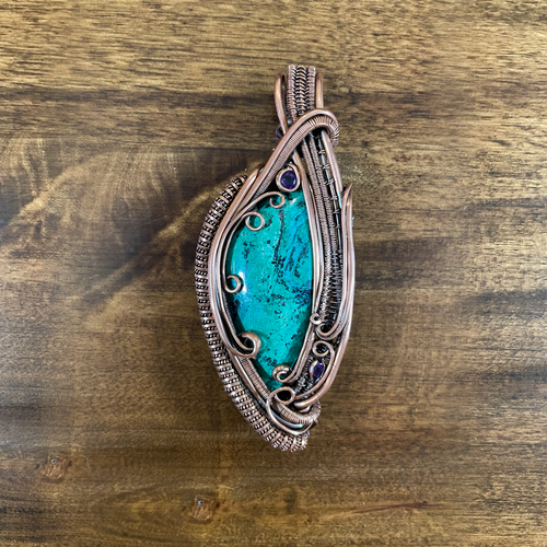 Chrysocolla and Amethyst Copper Heady Design Pendant